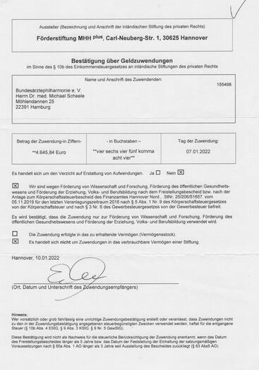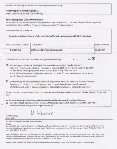 Spendenbescheinigungen können Sie anfordern!: bundesaerztephilharmonie@posteo.de